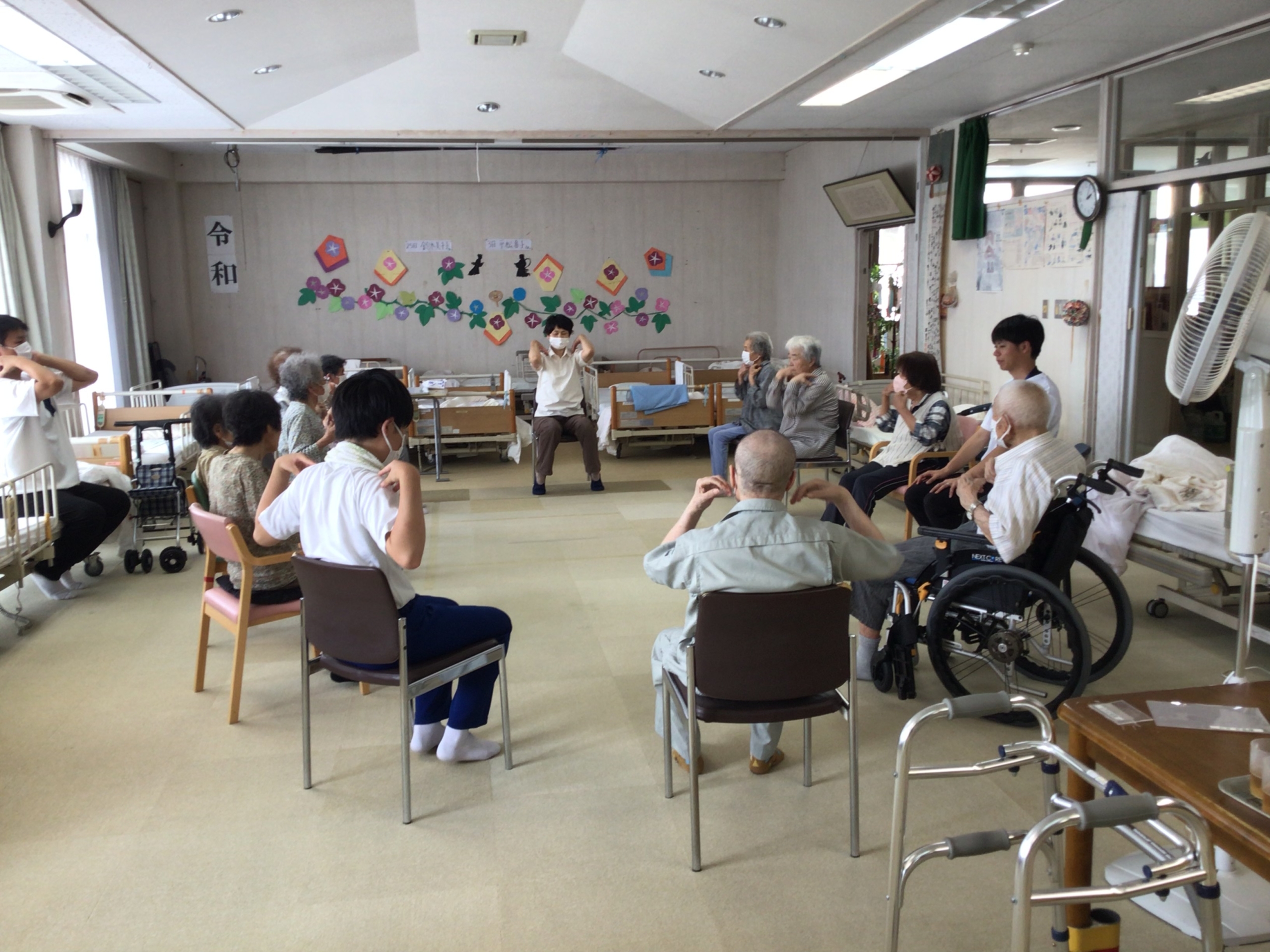 体操やレクリエーションも中学生が加わることで、いつも以上に活気ある時間となりました。