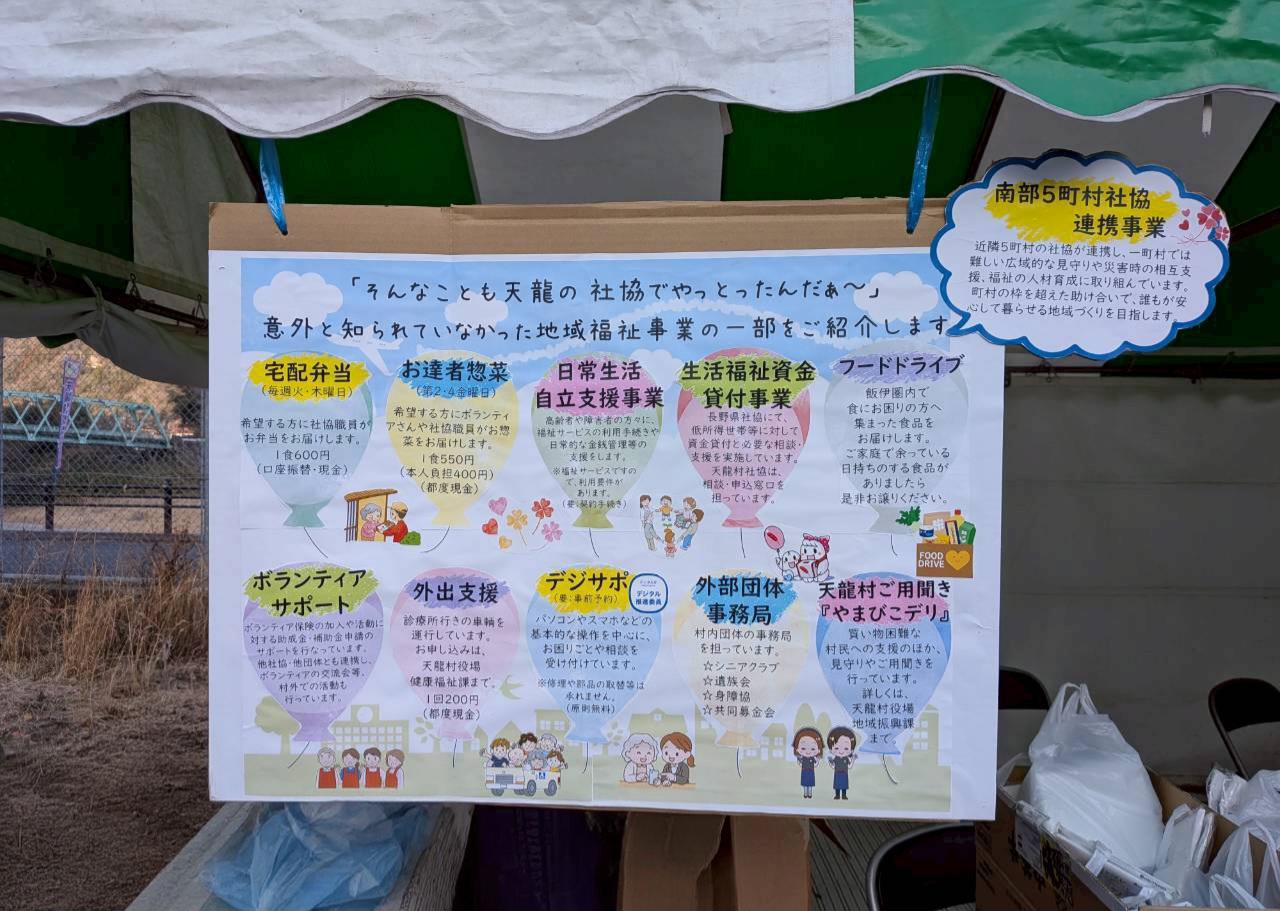 また、天龍村社協が取り組んでいる地域福祉事業の一部を紹介するパネルボードを展示しました。