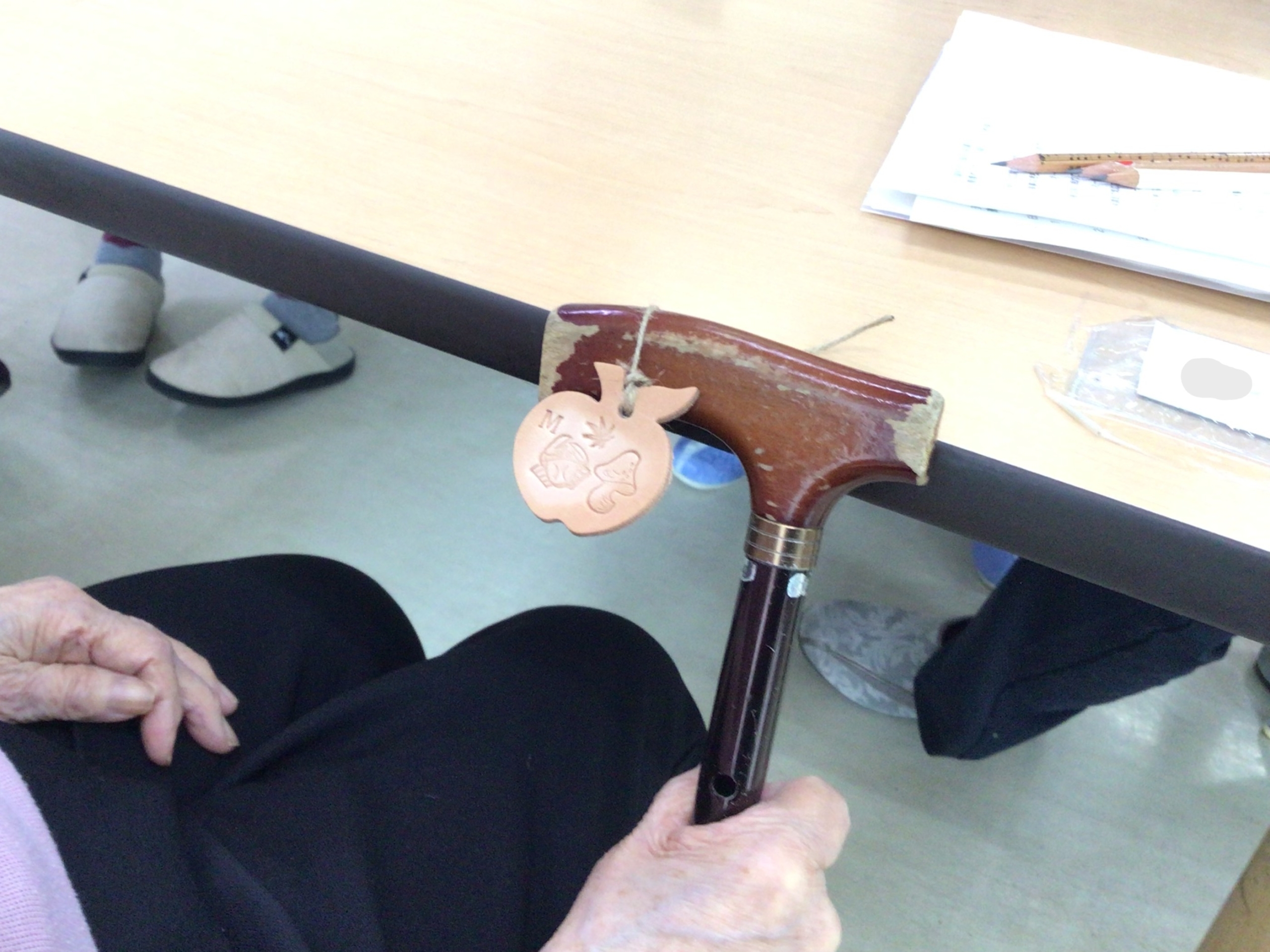 完成したチャームを早速、自分の杖やウォーカーにつけておられる方がいらっしゃいました。