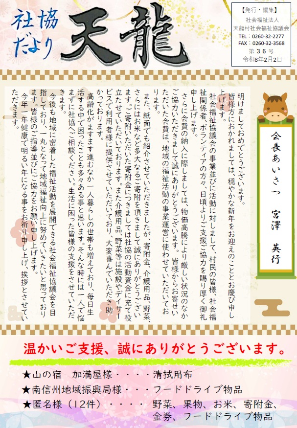 社協だよりは、皆様からご協力いただいている社協会費の一部にて発行をしております。(年2回)